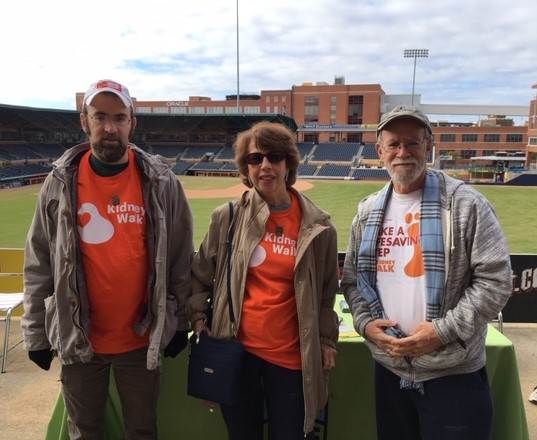 This weekend my husband (Neil), son (Paul, my recipient), and I participated in our umpteenth National Kidney Foundation Triangle Kidney Walk [see my post on our long history of kidney walks], in Durham, NC. We were thrilled to learn that it set a record for donations: more than $97,000, with money still coming in. I think it broke another record, too–this may have been the coldest one (I know it’s the only time I’ve ever worn a winter coat over my Kidney Walk tee shirt).