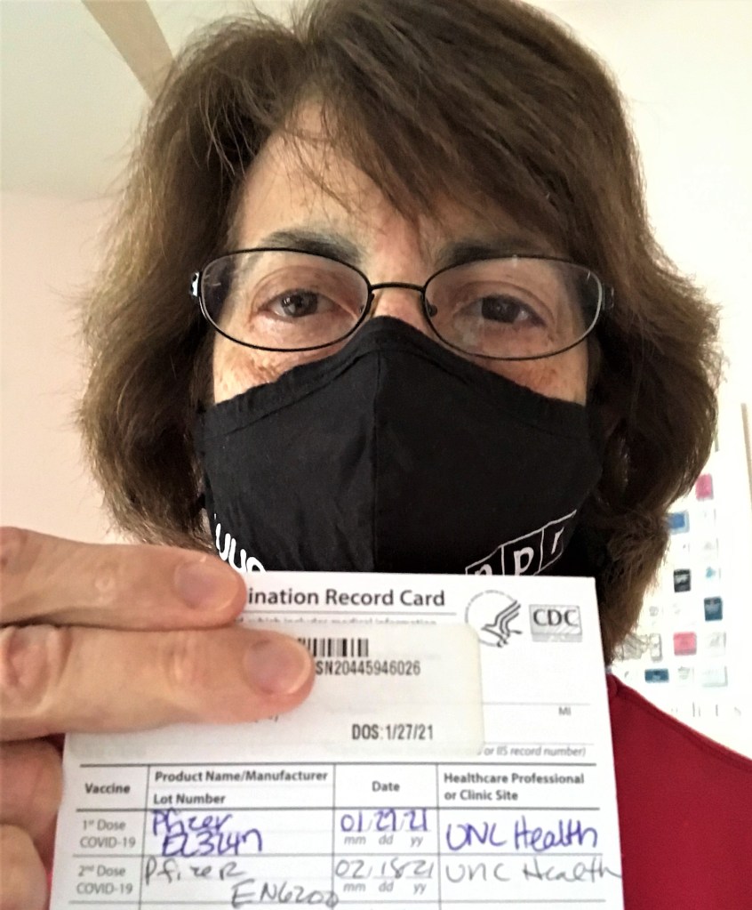 So, sure, it’s extremely comforting to know that I’m fully protected, but that’s not true for my immuno-suppressed son, my immuno-suppressed friends, my friends with health conditions in other states, my younger daughter, my neighbors—in fact, most of my community—so you bet I still wear a mask and keep my distance. It’s worth it.
