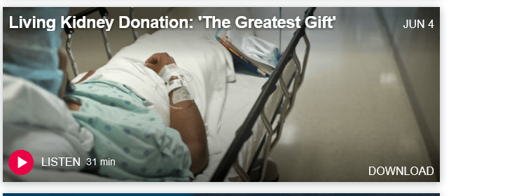 Just as exciting–and far more significant–was that a popular live radio show was devoting 31 minutes of airtime to talk personally and informally about kidneys and living donation: vitally important subjects that deserve lots of attention.